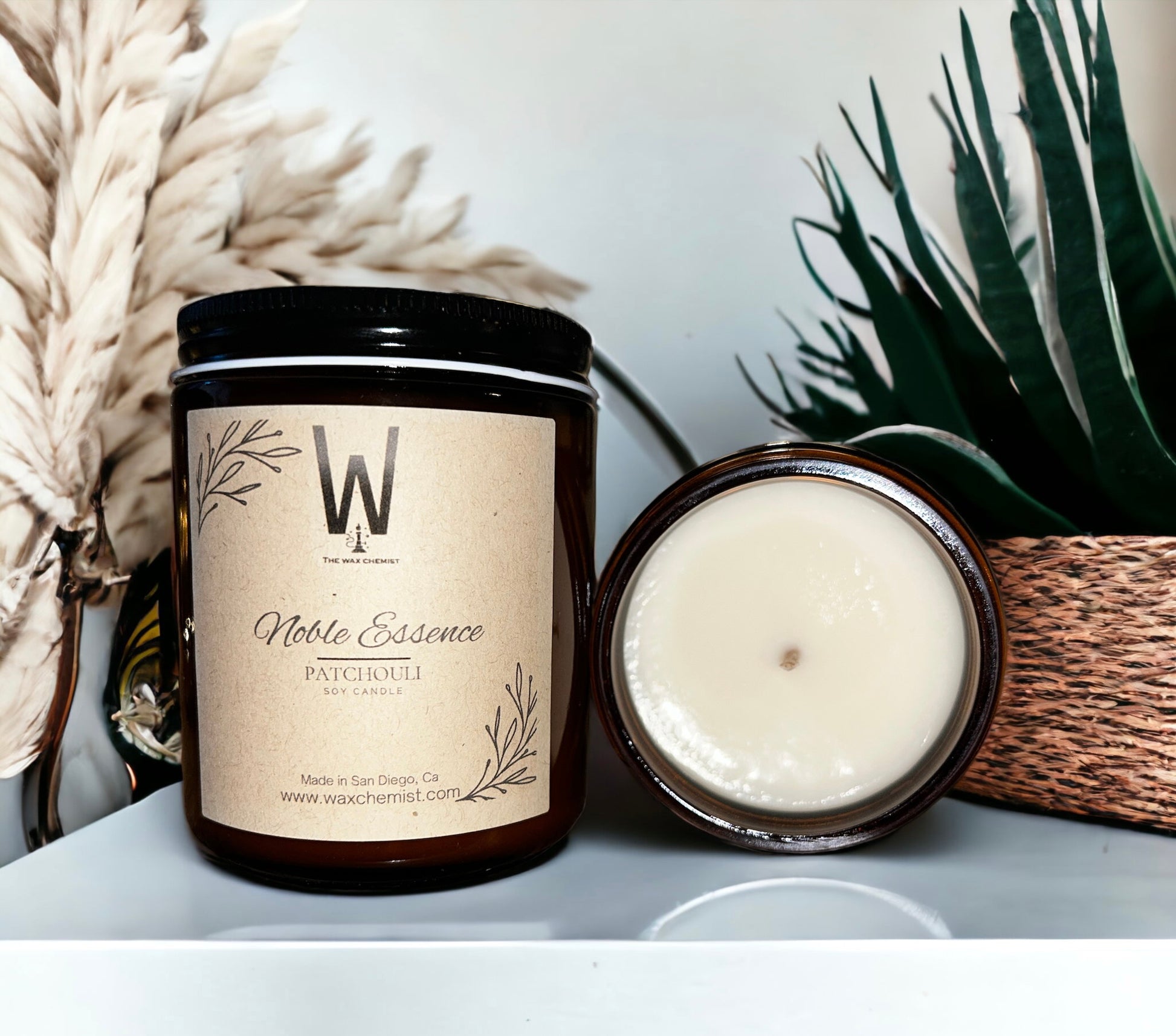 Noble Essence, where the warmth of earthy patchouli meets the embrace of aromatic cedar, glowing amber, and peppered sandalwood, all delicately intertwined with hints of shimmering greens. This sophisticated fragrance encapsulates the essence of opulence, offering a captivating blend that is both alluring and distinctive. Embrace the versatility of patchouli, a member of the mint family, reimagined in this exquisite candle with its woody, sweet, and spicy notes. Elevate your surroundings with Noble Essence, a candle crafted to envelop your space in the refined ambiance of indulgence and style.